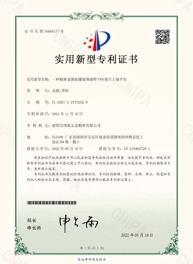 A precision metal button decorative welding PVD hanging piece tooling platform